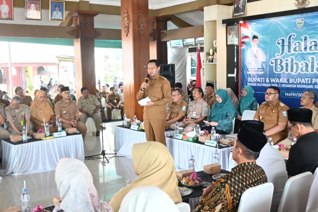 Camat Padamara, Joko Suyanto, S.Kom beserta Pejabat Struktural Kecamatan Padamara menghadiri kegiatan Silaturahmi dan Halal Bihalal Bupati dan Wakil Bupati Purbalingga Bersama Masyarakat Kabupaten Purbalingga di wilayah Kecamatan Bojongsari, Kutasari, Padamara dan Kalimanah Tahun 1447 H / 2026 M bertempat di Pendopo Kecamatan Bojongsari, Selasa (7/4/2026).