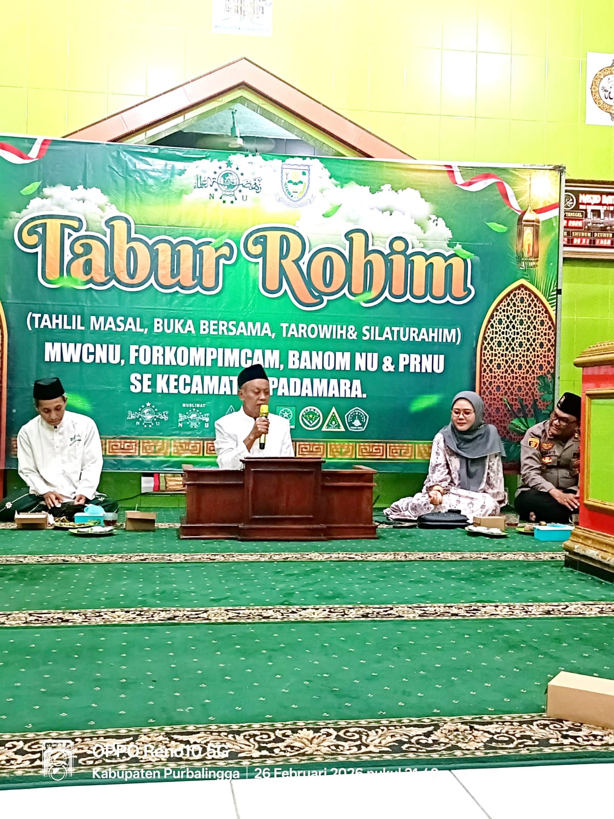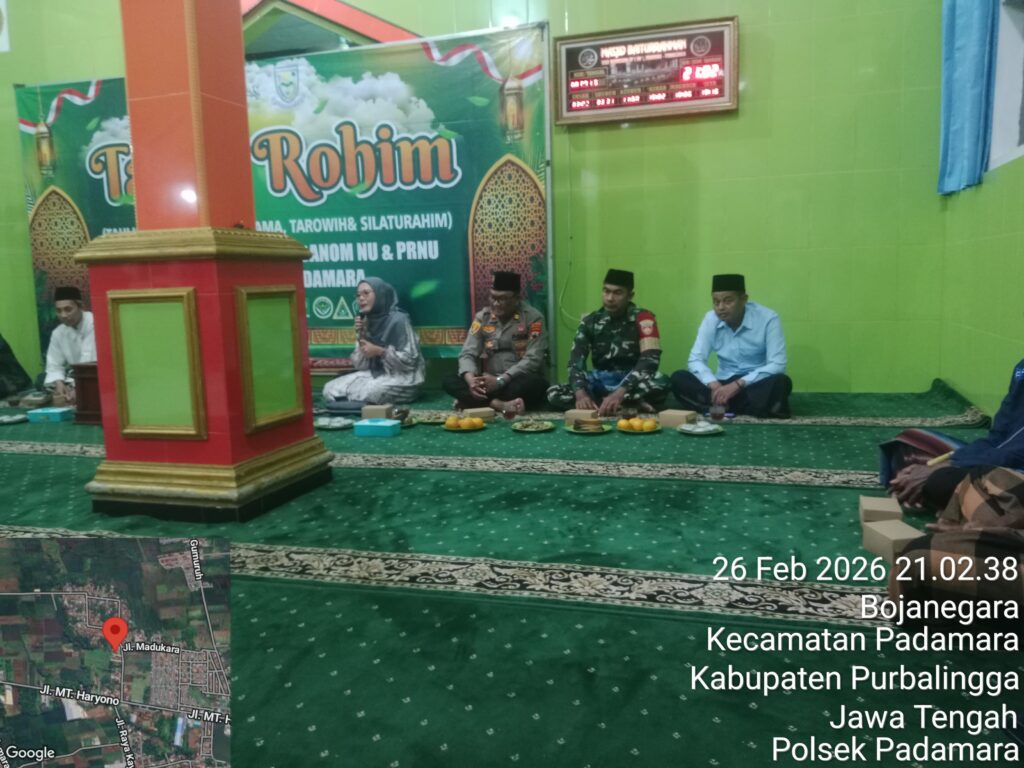 Pada hari Kamis (26/2/2026), Sekretaris Kecamatan Padamara, Evi Cahyani, S.STP menghadiri kegiatan Tarawih dan Silaturahim Forkopimcam dan MWCNU Kecamatan Padamara bertempat di Masjid Baiturohman Desa Bojanegara.